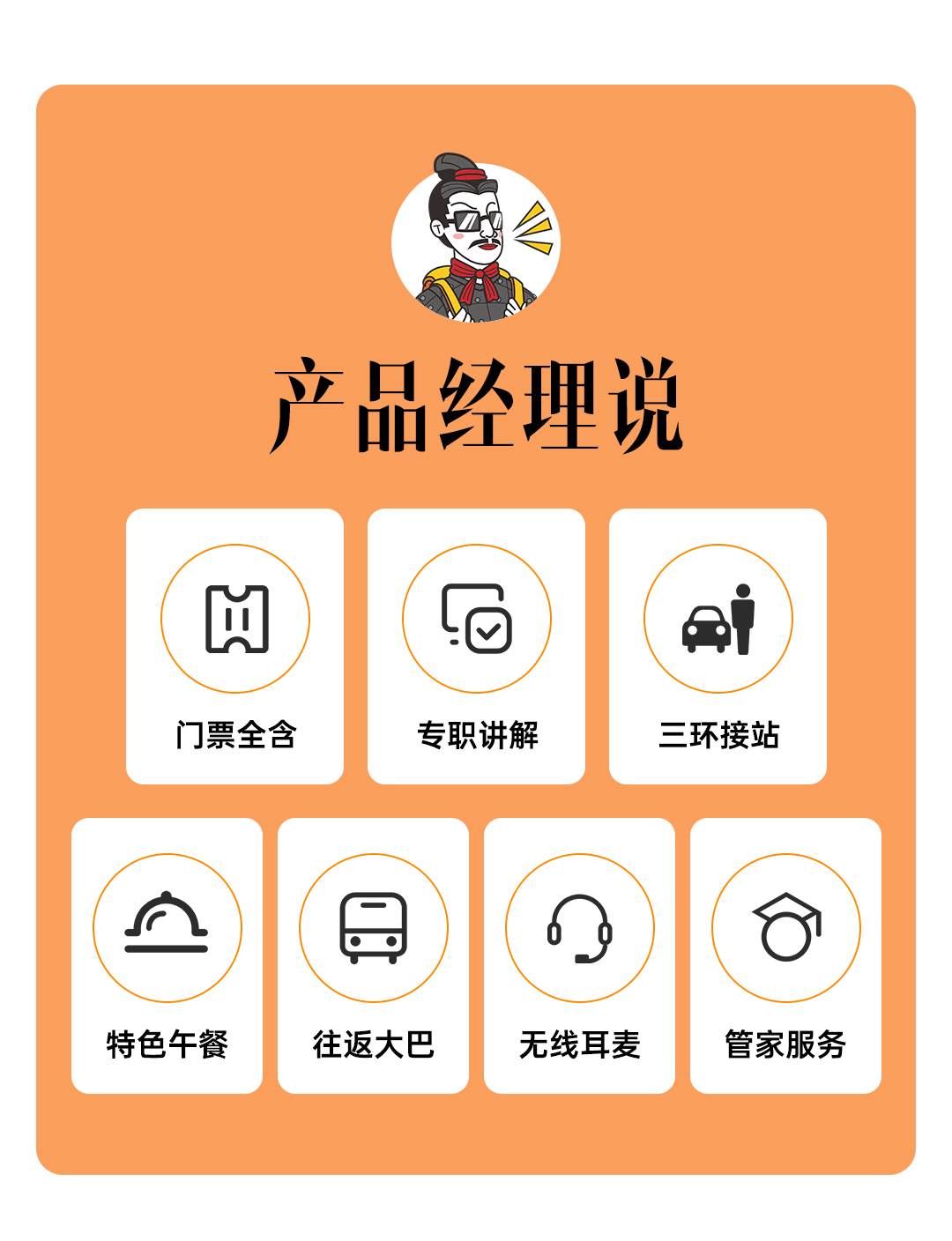 | 门票 | 所列景点首道大门票 |